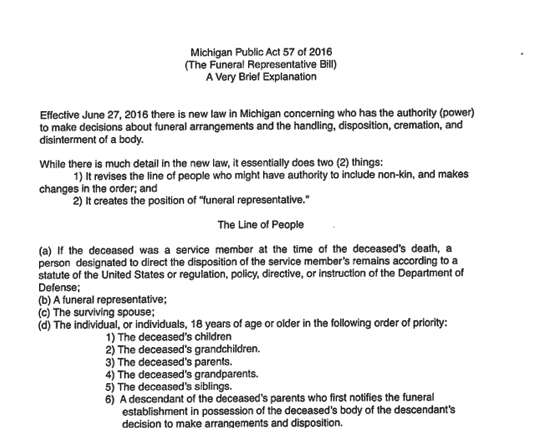This form is used by the Michigan Memorial Funeral Home and offers a $500 credit off of a niche purchase at the Park when the family chooses to use "The Witness Crematory" (located at the Funeral Home).